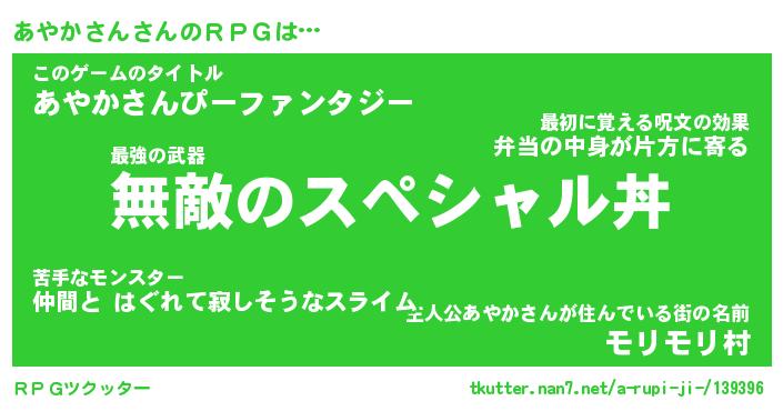 | ファンタジー風あだ名 | 『アヤフェル』『エターナルアヤカサンー』 |