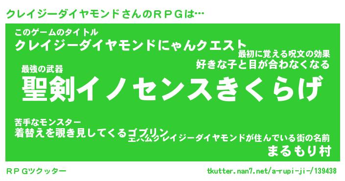 | ツイッター | クレイジーダイヤモンドさんのツイッターID『kikurage_nyan』 |