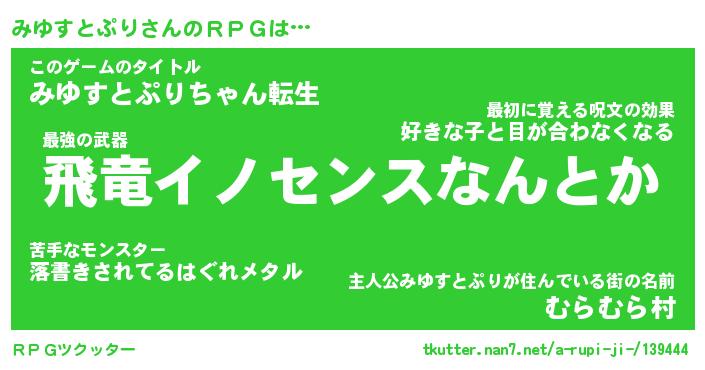| ファンタジー風あだ名 | 『ミユフェル』『ファントムミユス』 |