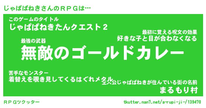 | 伝説のあだ名 | 『封印されし傭兵じゃぱぱねき』 |