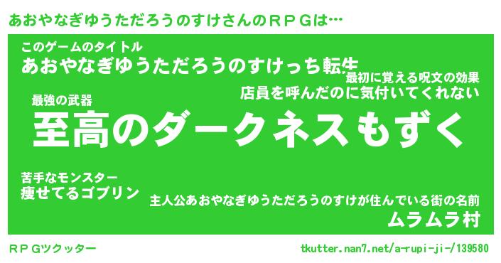 | ヒーロー風カッコイイあだ名 | 『スーパーアオヤナギユウタダロウノスケ』 |