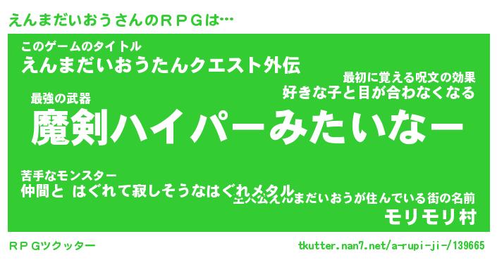 | 男性向けラノベタイトル風あだ名 | 『えんまだいおうの憂鬱』 |