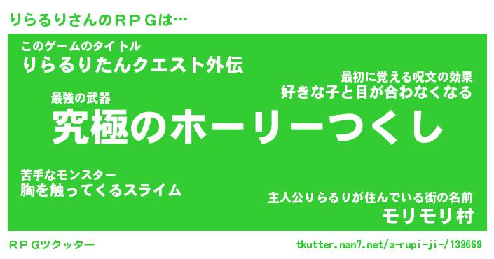 | ファンタジー風あだ名 | 『リラフェル』『エターナルリラルリー』 |