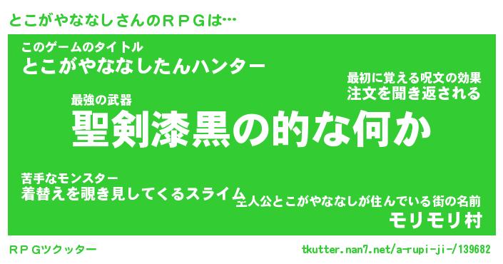 | 男性向けラノベタイトル風あだ名 | 『とこがやななしの憂鬱』 |