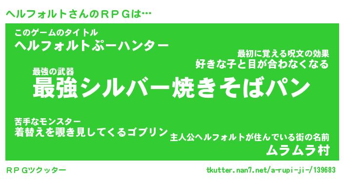 | 男性向けラノベタイトル風あだ名 | 『ヘルフォルトアートオンライン』 |