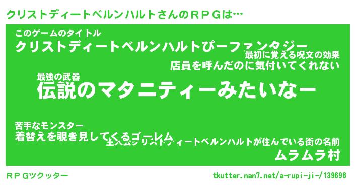 | 男性向けラノベタイトル風あだ名 | 『クリストディートベルンハルトの憂鬱』 |