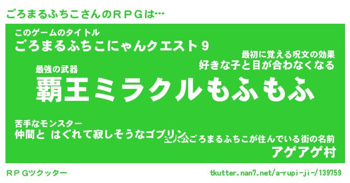 | 伝説のあだ名 | 『封印されし竜騎士ごろまるふちこ』 |