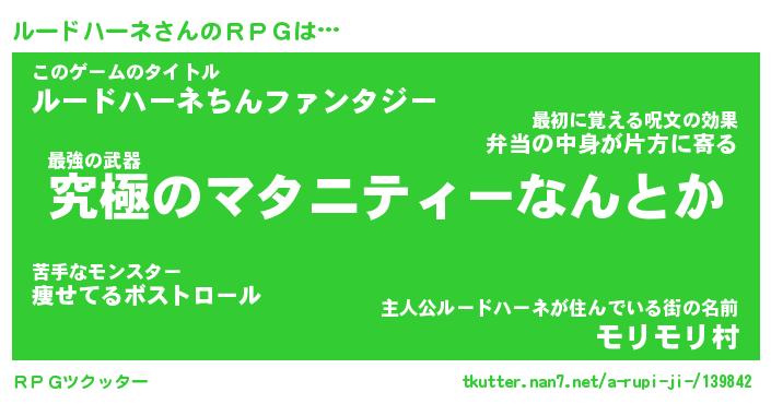 | 男性向けラノベタイトル風あだ名 | 『ルードハーネアートオンライン』 |