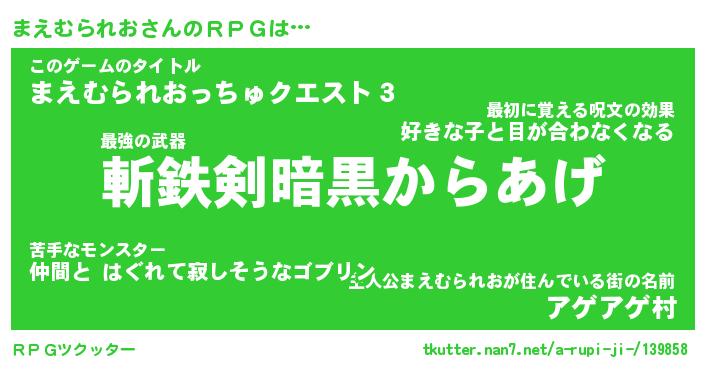 | 胡散臭い通販商品みたいなあだ名 | 『必ず成功する水晶球…その名も「まえむられお」』 |