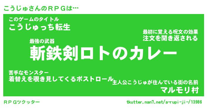 | 男性向けラノベタイトル風あだ名 | 『こうじゅの憂鬱』 |