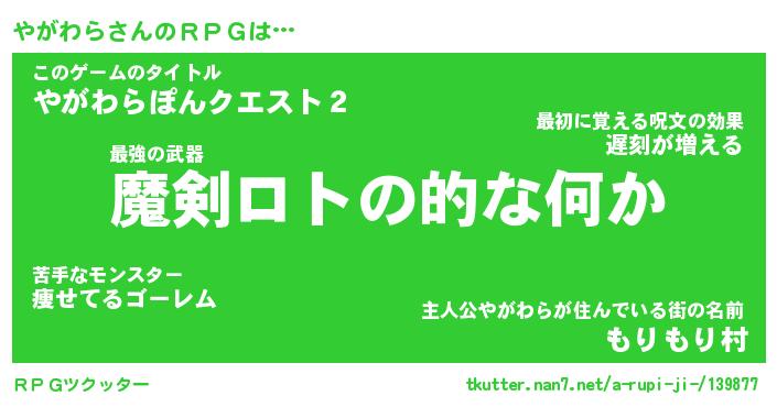 | 伝説のあだ名 | 『伝説の竜騎士やがわら』 |