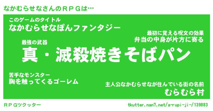 | 男性向けラノベタイトル風あだ名 | 『ナカムラセナアートオンライン』 |