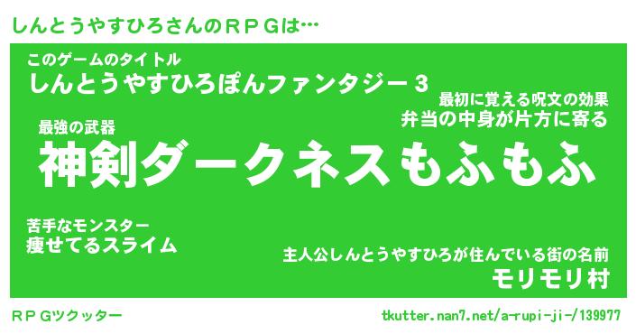 | 胡散臭い通販商品みたいなあだ名 | 『モテモテ間違いなし水晶球…その名も「しんとうやすひろ」』 |
