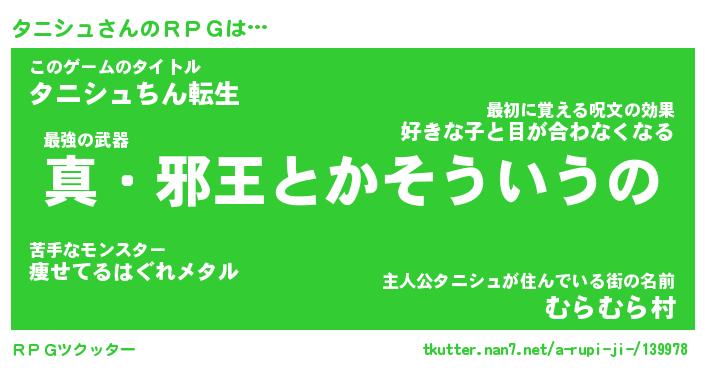 | 胡散臭い通販商品みたいなあだ名 | 『億万長者になれる水晶球…その名も「タニシュ」』 |