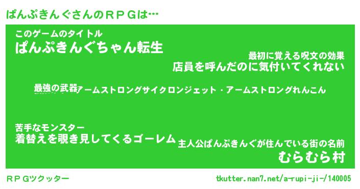 | 男性向けラノベタイトル風あだ名 | 『ぱんぷきんぐの憂鬱』 |