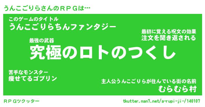 | 男性向けラノベタイトル風あだ名 | 『うんこごりらの憂鬱』 |