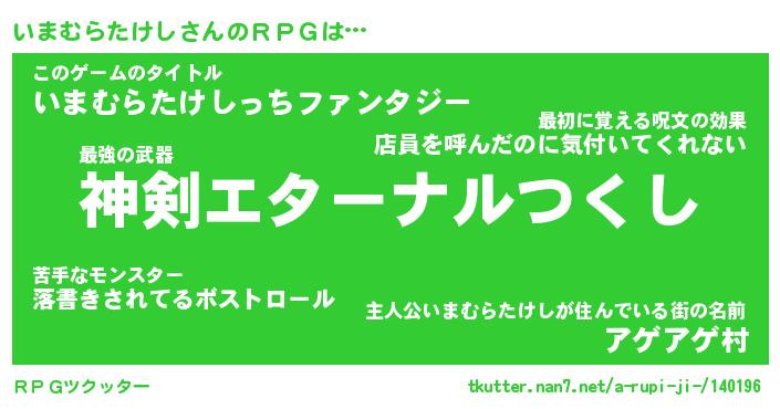 | 男性向けラノベタイトル風あだ名 | 『いまむらたけしの憂鬱』 |