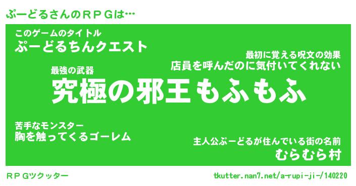 | 男性向けラノベタイトル風あだ名 | 『ぷーどるの憂鬱』 |