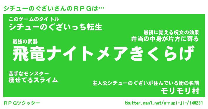 | 男性向けラノベタイトル風あだ名 | 『シチューノグザイアートオンライン』 |