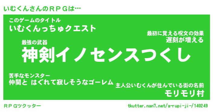 | 男性向けラノベタイトル風あだ名 | 『いむくんの憂鬱』 |