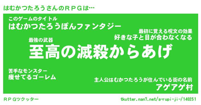 | 料理風あだ名 | 『節約★はむかつたろうと油揚げの玉子丼』 |