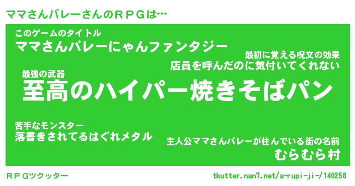 | 男性向けラノベタイトル風あだ名 | 『ママサンバレーアートオンライン』 |