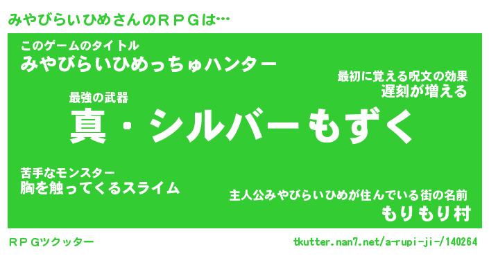 | 男性向けラノベタイトル風あだ名 | 『ミヤビライヒメアートオンライン』 |