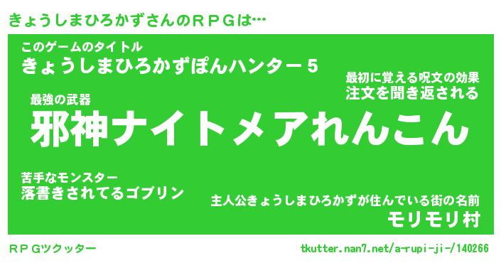 | 男性向けラノベタイトル風あだ名 | 『キョウシマヒロカズアートオンライン』 |