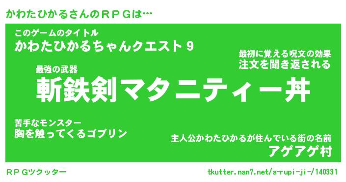 | 胡散臭い通販商品みたいなあだ名 | 『必ず成功する霊験あらたかなお札…その名も「かわたひかる」』 |