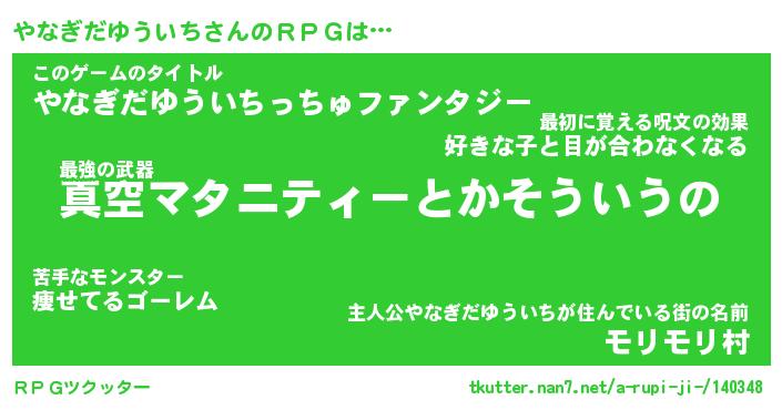 | 伝説のあだ名 | 『封印されしスナイパーやなぎだゆういち』 |