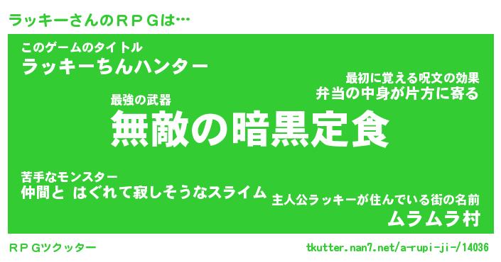 | 男性向けラノベタイトル風あだ名 | 『ラッキーアートオンライン』 |
