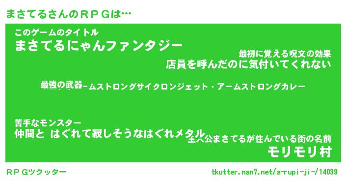 | ファンタジー風あだ名 | 『マサフェル』『エターナルマサテルー』 |