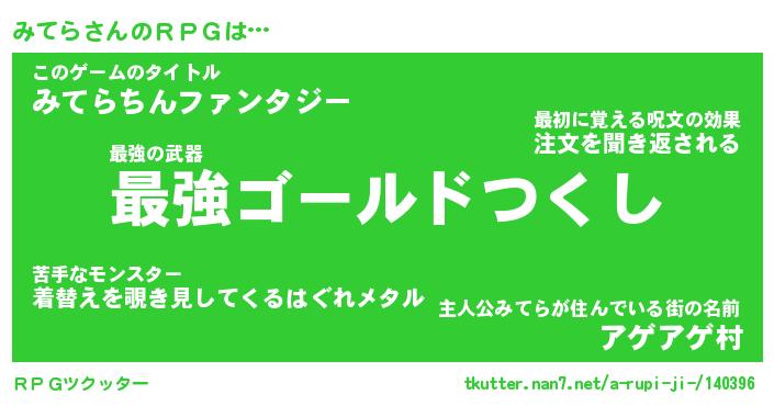 | 男性向けラノベタイトル風あだ名 | 『ミテラアートオンライン』 |
