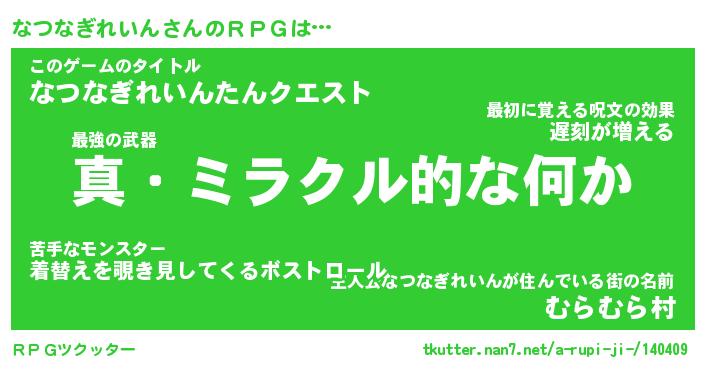 | ツイッター | なつなぎれいんさんのツイッターID『namakemono_man』 |