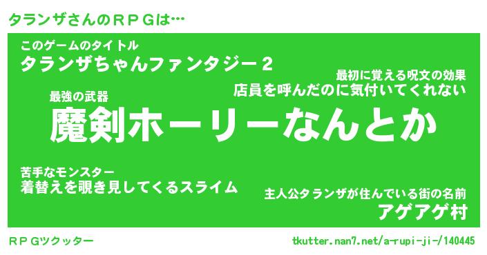| 男性向けラノベタイトル風あだ名 | 『タランザの憂鬱』 |