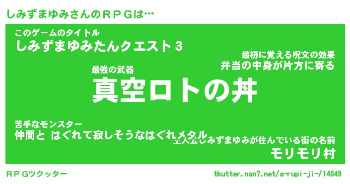 | 伝説のあだ名 | 『封印されし竜騎士しみずまゆみ』 |