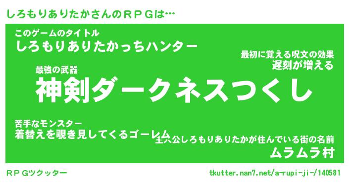 | 男性向けラノベタイトル風あだ名 | 『しろもりありたかの憂鬱』 |