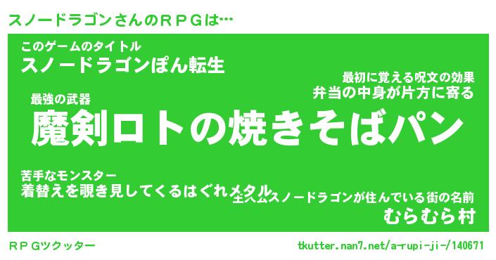 | 男性向けラノベタイトル風あだ名 | 『スノードラゴンの憂鬱』 |