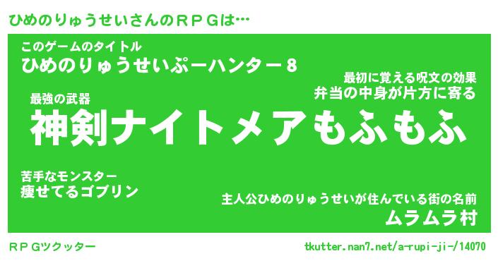 | ヒーロー風カッコイイあだ名 | 『スーパーヒメノリュウセイ』 |