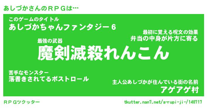 | ファンタジー風あだ名 | 『アシフェル』『エターナルアシヅカー』 |