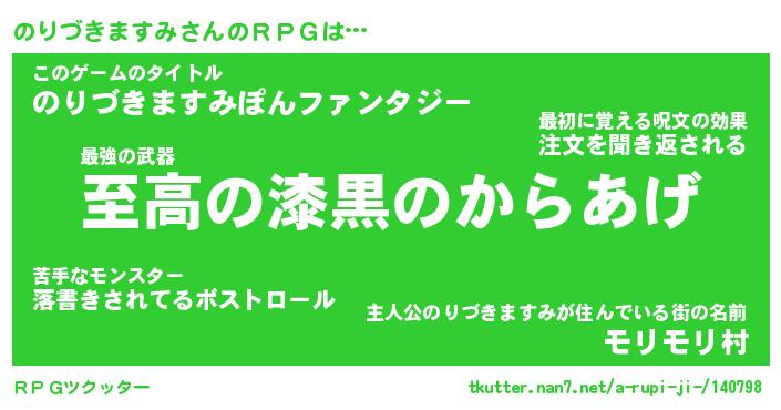 | 男性向けラノベタイトル風あだ名 | 『ノリヅキマスミアートオンライン』 |