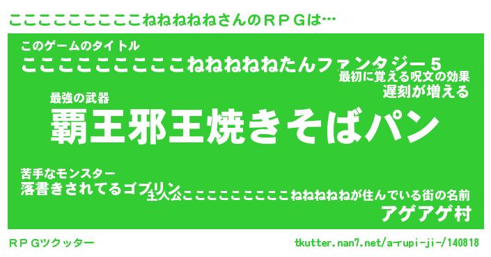 | 男性向けラノベタイトル風あだ名 | 『コココココココココネネネネネアートオンライン』 |