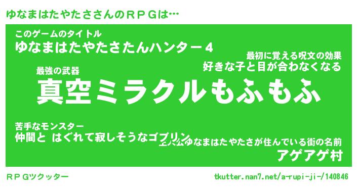 | 伝説のあだ名 | 『封印されし竜騎士ゆなまはたやたさ』 |