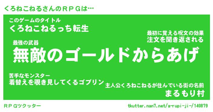 | ツイッター | くろねこねるさんのツイッターID『dendenmushi_kun』 |