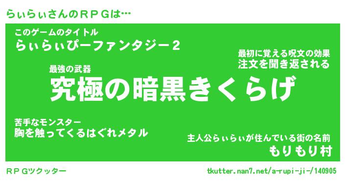 | 男性向けラノベタイトル風あだ名 | 『らぃらぃの憂鬱』 |
