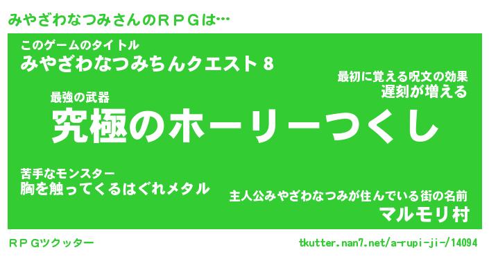 | 女子向けラノベタイトル風あだ名 | 『みやざわなつみ姫と円卓の騎士』 |