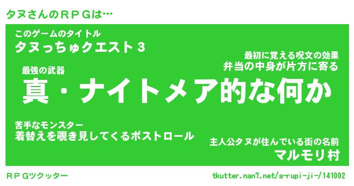 | 男性向けラノベタイトル風あだ名 | 『タヌアートオンライン』 |