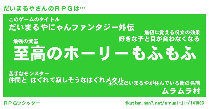 | 恥ずかしいあだ名 | 『プリティーだいまるや』『だいっちょ』 |