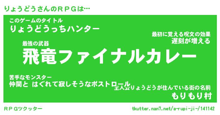 | ヒーロー風カッコイイあだ名 | 『スーパーリョウドウ』『幻影騎士リョ』 |