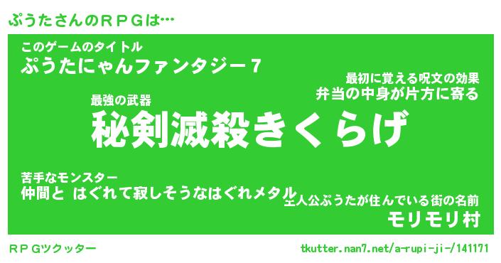 | 胡散臭い通販商品みたいなあだ名 | 『必ず成功する霊験あらたかなお札…その名も「ぷうた」』 |